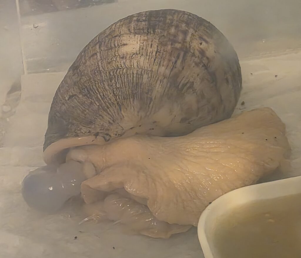 Effondrement du manteau : le manteau sort de la coquille et dépasse, il faudra aussi un bac hôpital très bas pour éviter que l’escargot ne monte aux parois et n’aggrave son cas. Uniquement mousse au fond comme précédemment. Cela peut etre causé par le passage forcé des escargots sous l’eau du robinet, ne le faites pas !